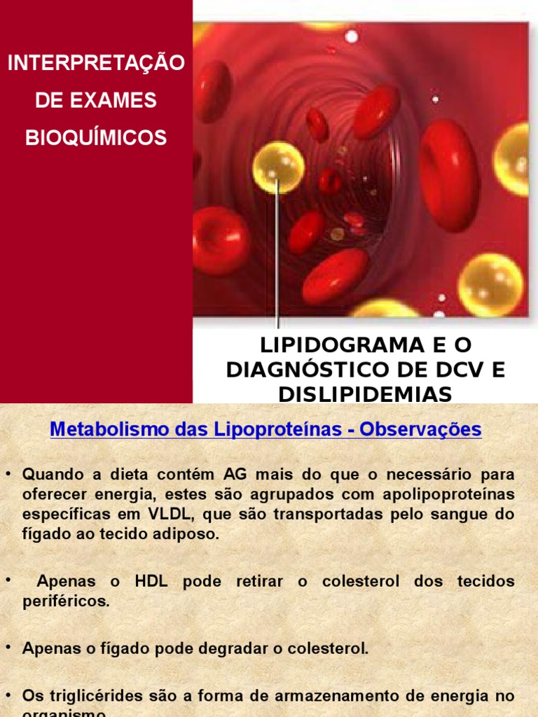 INTERPRETAÇÃO DE EXAMES BIOQUÍMICOS LIPIDOGRAMA E O DIAGNÓSTICO DE DCV E DISLIPIDEMIAS [PPT