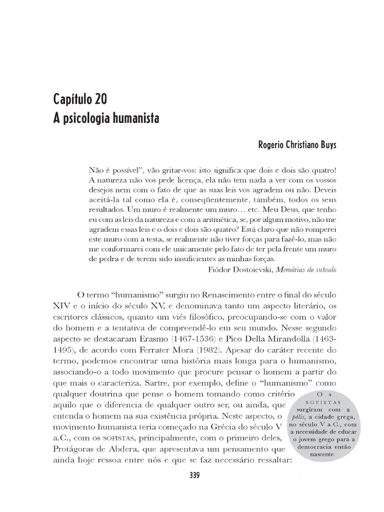 BUYS, Rogerio. A Psicologia Humanista (História Da Psicologia Rumos e Percursos, Cap. 20