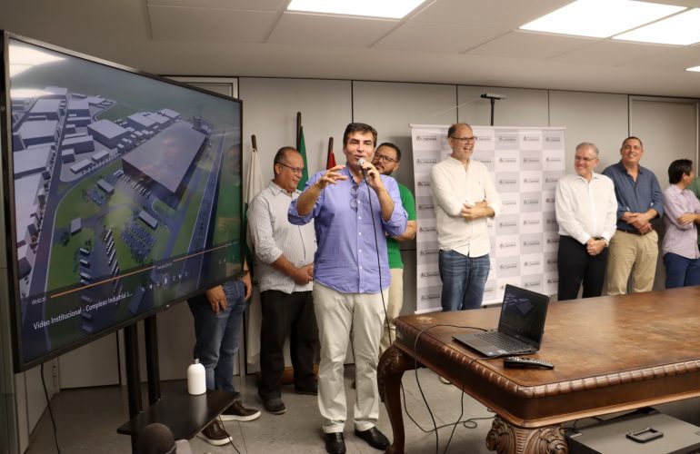 O Grupo J.Macêdo apresentou, na tarde desta segunda-feira (16), o projeto para seu novo complexo a ser instalado na Cidade Industrial de Londrina. O anúncio foi feito na Prefeitura de Londrina, com a presença do prefeito Marcelo Belinati, do presidente-executivo da J.Macêdo, Irineu José Pedrollo, membros do secretariado municipal, vereadores e representantes da sociedade civil..